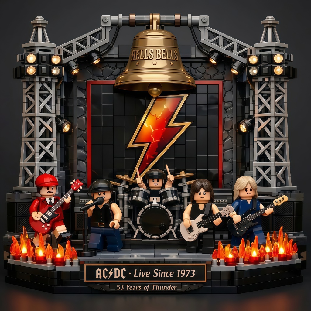 🥰This is not just an ordinary set of building blocks, but a tangible recreation of AC/DC's 53rd anniversary performance. From the symbolic giant bell of "Hells Bells" to the stage structure interwoven with flames and lightning, every detail proclaims that the thunder has never ceased.